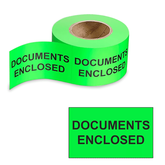 A Documents Enclosed Label indicates important paperwork is included with the package. It ensures visibility and protection of documents during shipping or product delivery.