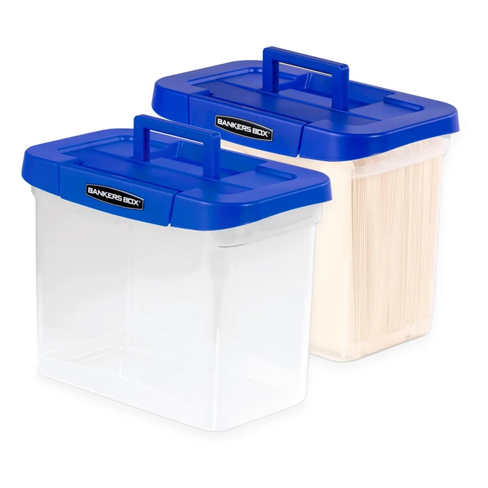 Portable Plastic File BoxManufacturerFellowesTypeContainers, Files and FoldersItemPortable Plastic File BoxFinishNoneWidth12 inchesLength15 inchesUnit of measureEach