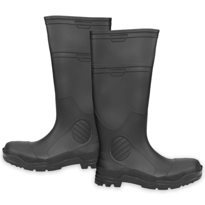 PVC Knee Boots 15Dunlop PolyGoliath 89682Quality StandardGeneral UseItem TypeReusableUseConstructionTypeFoot ProtectionItemPVC Knee BootsFinishBlack/GrayThickness1 inchesSize15Length15 inchesWidth6 inchesManufacturerDunlop PolyGoliath 89682Product Size15Unit of measurePair