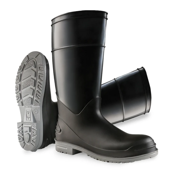 PVC Knee Boots are waterproof, durable boots made from polyvinyl chloride (PVC), designed for protection in wet or hazardous environments.