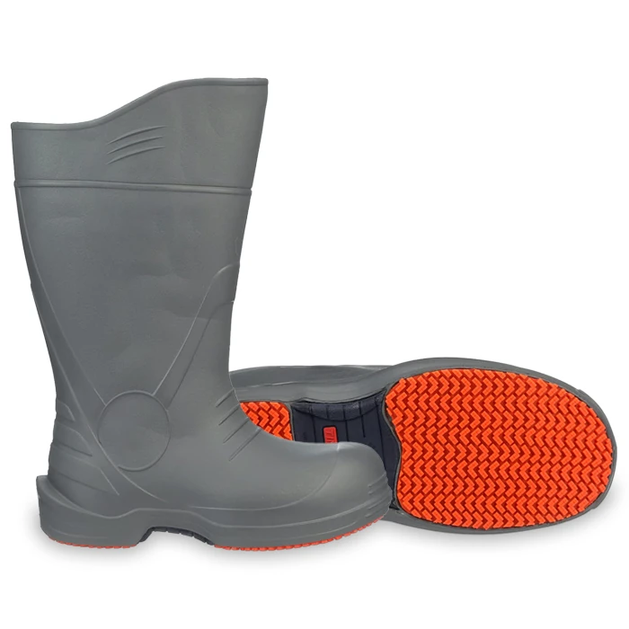 PVC Knee Boots 13Dunlop PolyGoliath 89682Quality StandardGeneral UseItem TypeReusableUseConstructionTypeFoot ProtectionItemPVC Knee BootsFinishGray/OrangeThickness1 inchesSize13Length15 inchesWidth6 inchesManufacturerDunlop PolyGoliath 89682Product Size13Unit of measurePair
