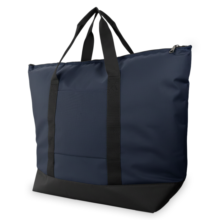 Tote Bags Zippered Navy BlueMaterialPolyesterColorNavy BlueFeaturesSecure closure, Multi-purposeHandle TypeShoulder strapsSize15" × 16Unit of measureBox