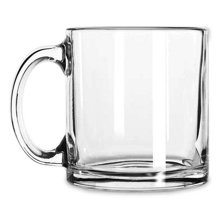 A Glass coffee mug provides a sleek, transparent look ideal for showcasing beverages. It’s perfect for serving lattes, teas, or specialty drinks in style and can also be customized with a company logo, making it suitable for branded apparel, promotions, or merchandise lines.