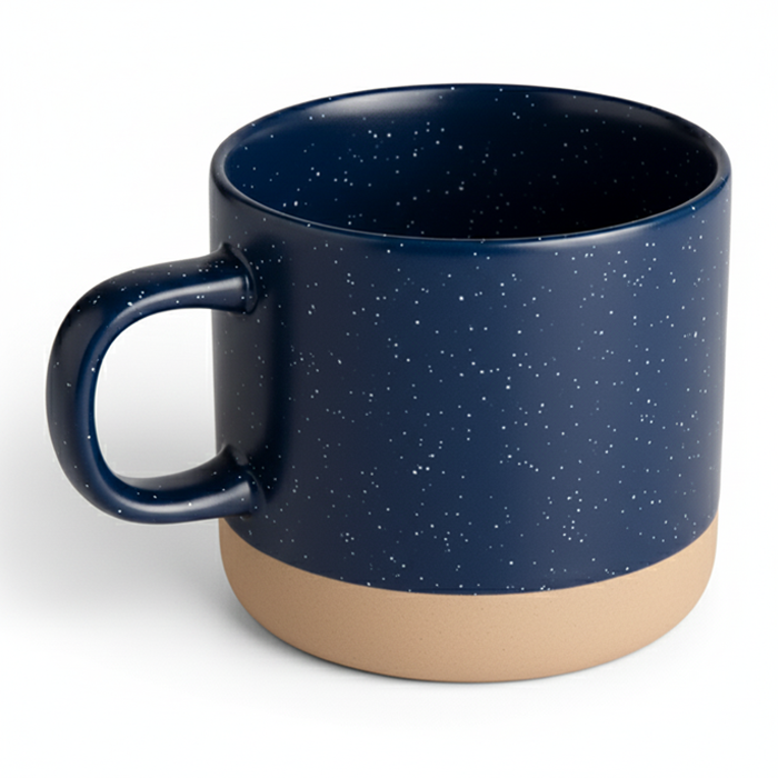 A Stoneware coffee mug is a heavy, kiln-fired cup with excellent heat retention. It’s favored for its durability, rustic texture, and handcrafted aesthetic and can also be customized with a company logo, making it suitable for branded apparel, promotions, or merchandise lines.