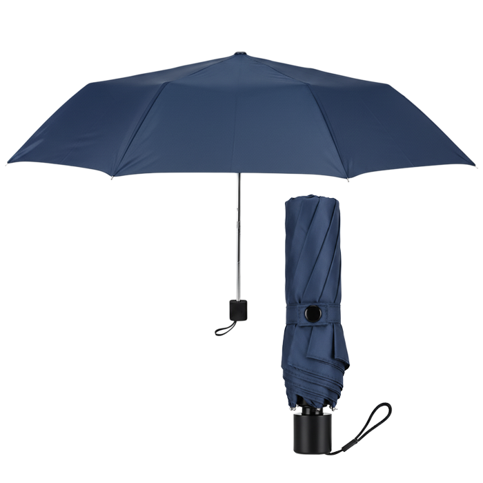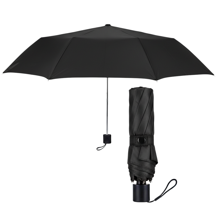 A Folding umbrella is a compact, portable option for easy travel and storage. It’s perfect for commuters or those needing lightweight, on-the-go protection and can also be customized with a company logo, making it suitable for branded apparel, promotions, or merchandise lines.