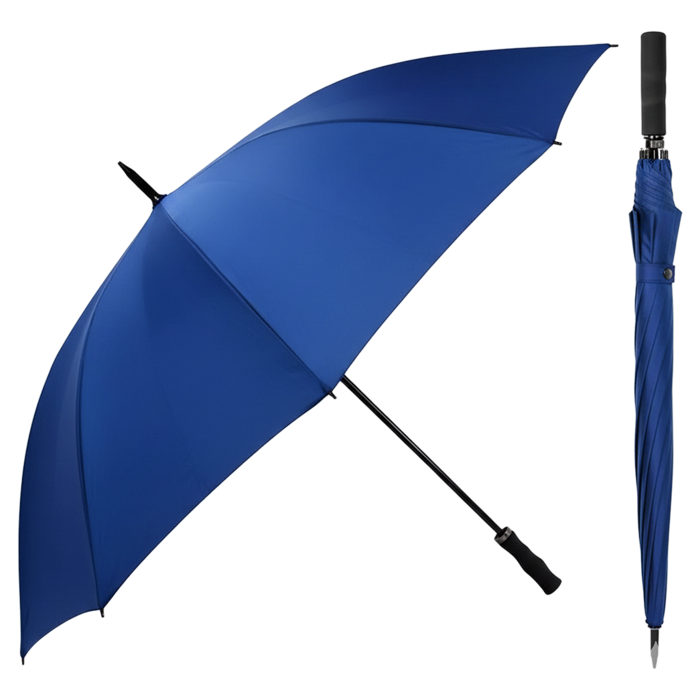 A Golf umbrella provides wide coverage ideal for sports, outdoor events, or heavy rain. It’s designed for maximum protection and stability in windy conditions and can also be customized with a company logo, making it suitable for branded apparel, promotions, or merchandise lines.