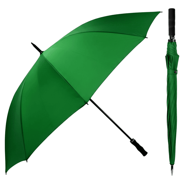 Umbrellas Golf Umbrella GreenMaterialPolyester Canopy with Fiberglass FrameColorGreenDiameter60"–68"FeaturesExtra Large CoverageHandle TypeEVA foam gripUnit of measureEach