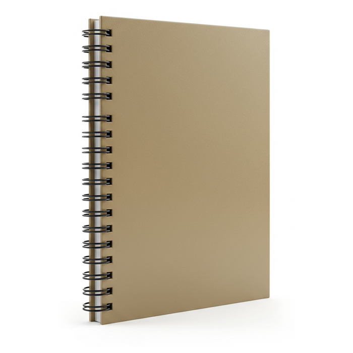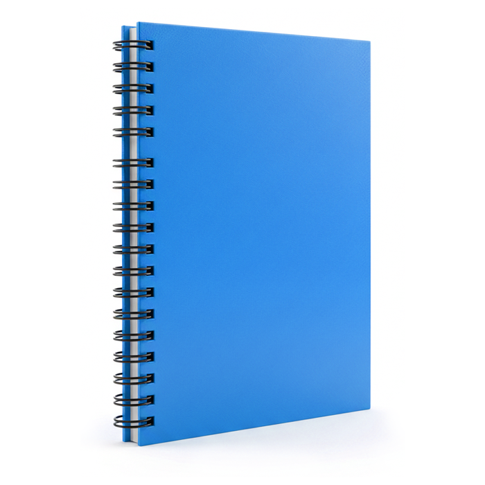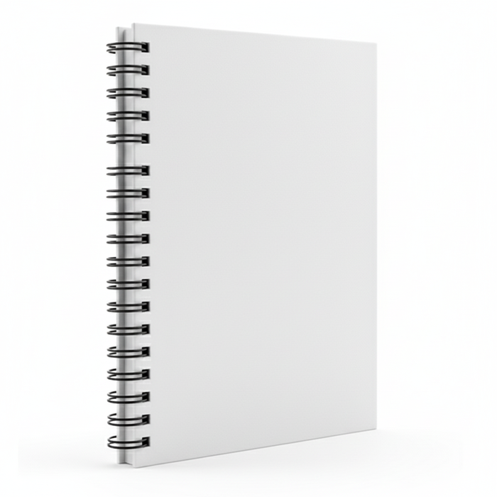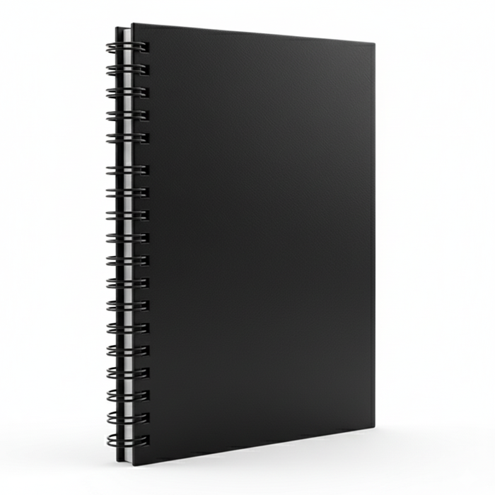 A Spiral-bound notebook provides flexibility and ease for writing or sketching on any page. It’s ideal for students, professionals, or artists on the go and can also be customized with a company logo, making it suitable for branded apparel, promotions, or merchandise lines.