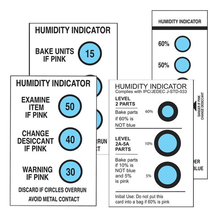 Humidity indicators are visual tools used to monitor moisture levels in packaging. They help detect exposure to humidity that could damage sensitive products or components.