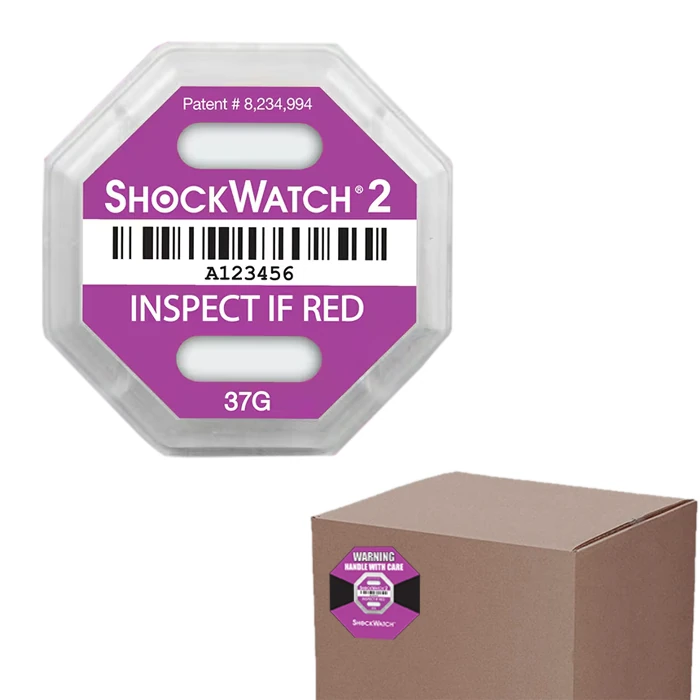 ShockWatch 2 - 37G Indicators are impact indicators designed to detect specific shock levels. They activate when a shipment is exposed to forces exceeding 37G during handling.